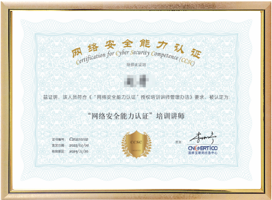- 网络安全能力认证培训讲师(CCSC)